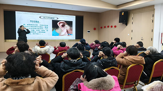 活动伊始,中医养生讲座在热烈的氛围中开讲。崔敏医师团队特邀韩拉拉中医师结合大寒节气“寒气逆极”的气候特点,用通俗易懂的语言为老人们讲解了寒冬保暖、饮食调理、慢病防护等核心养生知识,针对老年人常见的关节不适、呼吸道疾病等问题,分享了穴位按摩、食疗配方等实用技巧,现场互动频频,老人们认真记录要点、踊跃提问,在轻松交流中收获了科学的养生方法。