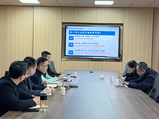 2026年1月19日下午,海宁市教育局党组书记、局长胡孝明一行莅临海宁技师学院,就学校高质量发展及未来规划进行专题调研指导。此次调研旨在深入了解学校办学实况,精准把脉发展关键,为技工教育服务地方经济社会高质量发展凝聚共识、明晰路径。海宁技师学院党委书记姚忠杰,副校长王立群、周刚、程锋、潘晓刚陪同调研并参加工作汇报会。