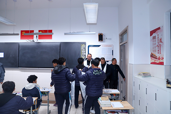 在鄞州职高校长张武剑的陪同下,楼晓东副校长一行首先走访了西藏班,受到藏族学子们的热情欢迎。同学们以隆重的民族礼仪,为远道而来的客人们献上洁白的哈达,现场气氛温暖而融洽。随后,考察团实地参观了学校交通运维与智能制造实训室,详细了解了实训基地的建设规划、设施配置与运行管理情况,并对实训室高标准、专业化的建设成果给予了高度评价。