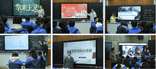 新教师们紧扣时代脉搏,将技术赋能与人文浸润有机融合。计算机课堂上,屠余杰老师以《鸿门宴》为依托,引入豆包、即梦等 AI 工具,引导学生通过关键词设计提示词还原经典场景,借助学习通实现数字化教学闭环。金凯灵老师从电影《孤注一掷》的情境切入,将抽象的进制转换化为可触可感的游戏与实例。德育组的钟姝婷老师将社会主义核心价值观与时代热点结合,通过生活案例辨析传递正向价值。