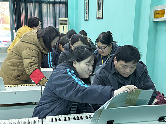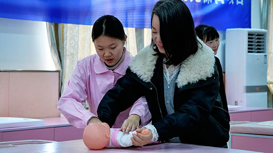 活动中,各专业学生展现出扎实的专业素养:母婴照护专业学生示范婴儿抚触技巧,智慧健康养老服务专业学生讲解老年护理要点,旅游服务与管理专业的学生呈现茶艺文化之美,幼儿保育专业学生则通过衍纸手工和键盘联弹,在艺术互动中传递温情。学生成为真正的“榜样”,在传授中巩固技能,实现价值;家长在参与中见证成长,收获自豪。