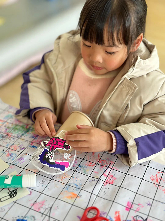 活动室中,一场创意手工之旅同步开启。孩子们用马克笔在纸杯上绘出心中的冬日图景,再精心装点雪花、小玩偶、圣诞树等小物件,一个个独一无二的大寒水晶球就此诞生。透明的球体内,仿佛藏着一整个冬日童话,孩子们端详着自己的作品,脸上洋溢着满满的幸福与喜悦。