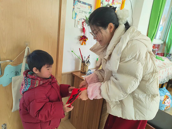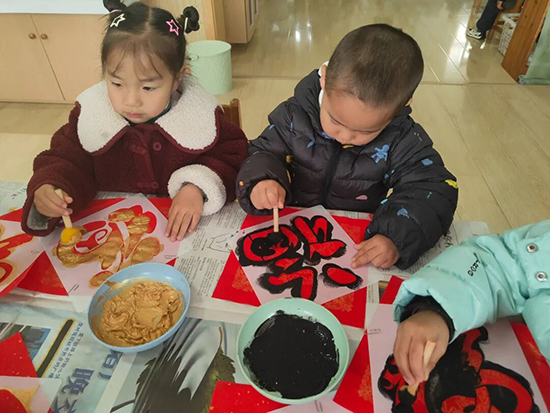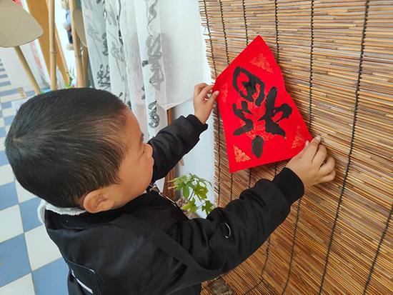 红纸铺展,古朴的拓印模板整齐排列,一场热闹的拓“福”活动欢乐启幕。孩子们紧握拓印工具,蘸取颜料、均匀涂刷、轻压模板,一个个带着墨香的“福”字跃然纸上。随后,大家亲手将“福”字贴满教室门窗与走廊,看着满眼喜庆的红色,成就感油然而生。孩子们还将亲手拓印的“福”字一一赠予老师,在送福的温馨互动里,传递着冬日的暖意与诚挚的祝福。