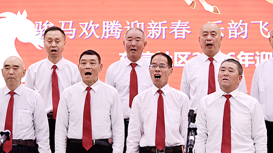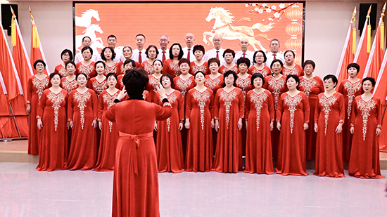 第三篇章“迎·锦绣新春”延续欢乐,更添文化韵味。葫芦丝班演奏的《龙的传人》激荡家国情怀,引发全场共鸣;郑娟文演绎的现代京剧《坚决要求上战场》字正腔圆、神韵十足;海创舞蹈队表演的《新花木兰》英姿飒爽,赋予经典以时代新意;郭友海的空竹表演灵动多变,非遗魅力引人赞叹;太极队呈现的舒怀剑《一剪梅》意境悠远,将刚柔之美演绎得淋漓尽致。最后,全体演员与观众在东韵和鸣声乐团《欢聚一堂》的合唱中温情收尾,歌声凝聚团圆喜悦,也为本次活动画上圆满句号。