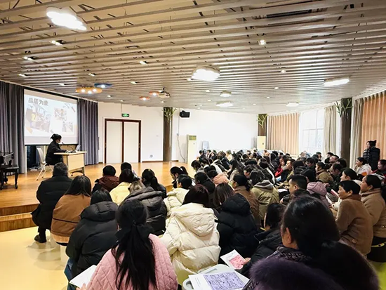 本次活动以《3-6岁儿童学习与发展指南》为指导,紧扣幼儿园“原色小社团”游戏课程“兴趣为媒,品质为重,经验生长”的核心导向,旨在搭建家园协同教育平台,凝聚共育共识。活动伊始,家长们在班级签到后,前往指定场地聆听汇报:中班年段组长李依洋以《成长邀约 共赴社团拾光》为题,大班年段组长唐嘉楠以《走进孩子的“原色”世界》为题,分别介绍社团课程的招募流程、体系架构与实施成效。汇报中,一个个幼儿成长案例生动鲜活,图文、短视频的多元呈现,让家长们直观感受到孩子在社团活动中的蜕变与进步,深切体会到教师的用心付出。