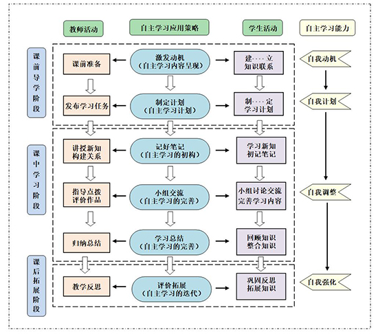| 教学环节 | 教师活动(引导者、支持者) | 学生活动(主体、自主学习者) | 培养的自主学习能力维度 |