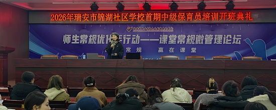 2月1日上午9时,瑞安市锦湖社区学校文化大礼堂内气氛热烈,一场面向中级保育师的实操技能培训在此正式启动。来自全市各幼儿园的245名学员齐聚一堂,共同参加本次系统化、专业化的能力提升课程。培训特邀温州人民医院神经内科副主任护师梅美銮担任主讲教师,采取“理论讲解+实操演练”相结合的模式,分6个单位时间,围绕保育工作的关键环节展开深入教学。