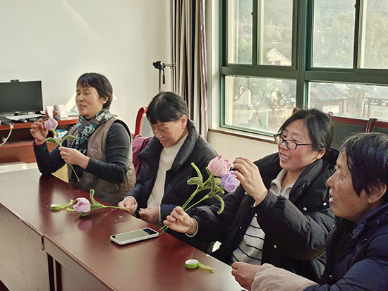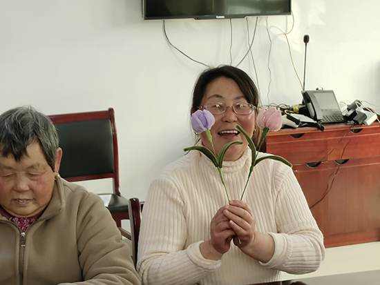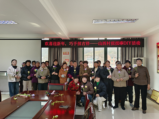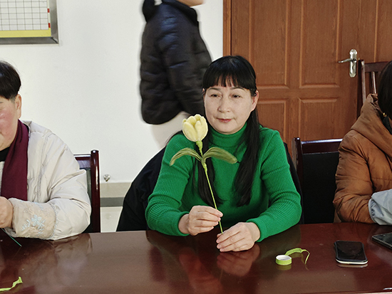 活动最后,大家自豪地展示自己的作品,并合影留念,记录下这充满成就感的美好时刻。“第一次尝试这种手工,没想到我能做出这么漂亮的花!”村民唐阿姨高兴地说,“春节摆在家里,既喜庆又有意义。”