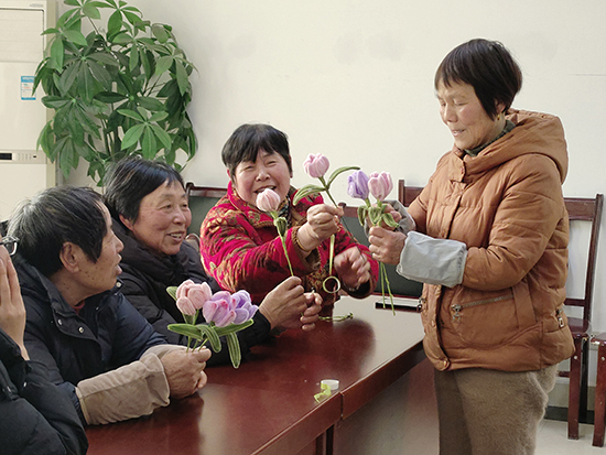 动手制作环节,学员们兴致勃勃地开始创作。志愿者们在现场巡视指导,及时解答学员们遇到的问题。“这里要拧紧一点,花瓣形状会更饱满”“两种颜色搭配起来效果很好”……现场建议声不绝于耳。