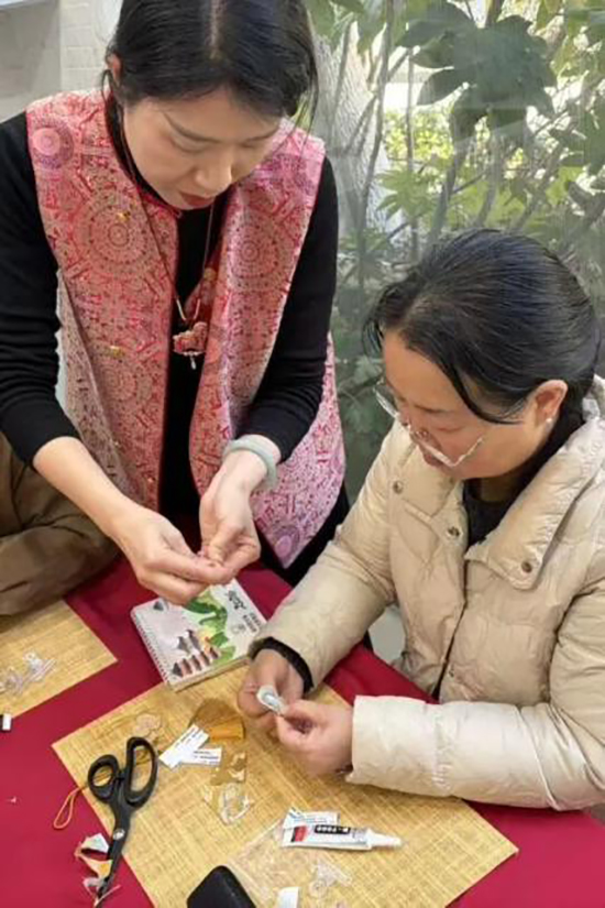 1月13日,建隆社区举办宋锦挂件制作活动。工作人员精心准备了多样宋锦材料并讲解演示制作步骤。居民们在指导下选料、裁剪、粘贴骨架、搭配挂饰,亲手制作出兼具美感与寓意的葫芦挂件。活动不仅为居民提供了互动平台,增进了社区情谊,更以生动有趣的方式让非遗宋锦融入日常生活,使居民在亲手创作中深入感受传统工艺的魅力,增强了文化认同。
