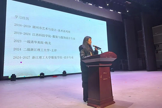 1月30日,星海演出厅内激情洋溢,2016 级美术高考班优秀毕业生、现浙江理工大学服装专业研究生叶佳云同学重返母校,为学弟学妹们带来了一场主题鲜明、催人奋进的励志讲座。本次讲座旨在帮助正值迷茫期的职高学子找准方向、明确目标,以学姐的真实求学经历为他们注入成长动力。
