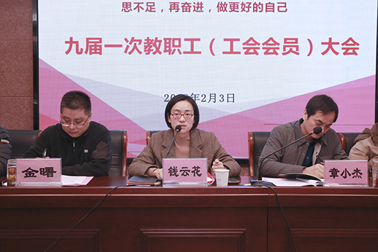 2026年2月3日,浙江开放大学长兴学院、长兴教师进修学院九届一次教职工(工会会员)大会在庄严的国歌声中开幕。全体教职工围绕“思不足、再奋进,做更好的自己”主题,共商学院发展大计,擘画未来蓝图。