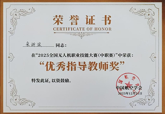 不仅如此,作为学校汽修专业的新生力量,来老师积极响应国家大力发展新质生产力的号召,紧扣时代脉搏,把研究领域扩展到低空领域。从2023年起,他系统研习无人机领域知识与技能,将所学融入教学实践。他与国家特级技师任城龙老师合作,带领学生参加无人机类全国竞赛,获得全国一等奖2项、二等奖3项,省级一等奖4项、二等奖5项。
