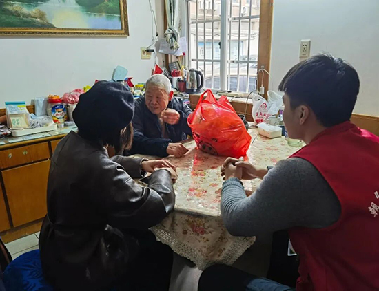 小队成员与社区工作人员一同走进6户高龄老人家中,耐心询问日常起居、身体状况,倾听心声诉求,陪老人唠家常、话新年,用贴心的陪伴驱散冬日的寒凉与孤单。同时,社区为老人们送上定制“家礼”,提前送上新年的美好祝福,让老人们在岁末年初,真切感受到社区大家庭的温暖与关爱,真正实现“桑榆晚景皆温暖,朝夕相伴不孤单”。