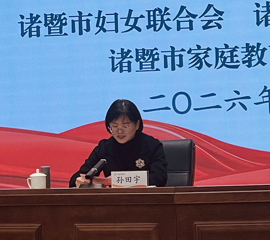本次大会由市妇联党组成员、副主席邱莎莎主持。诸暨市教育体育局党委委员孙田宇为大会致辞,她围绕家庭教育工作提出三点要求:一要深化思想认识,筑牢家庭教育工作思想根基;二要夯实育人阵地,构建家校社协同育人良好生态;三要做优服务品牌,持续提升家庭教育服务效能,为全市家庭教育工作高质量发展指明方向。