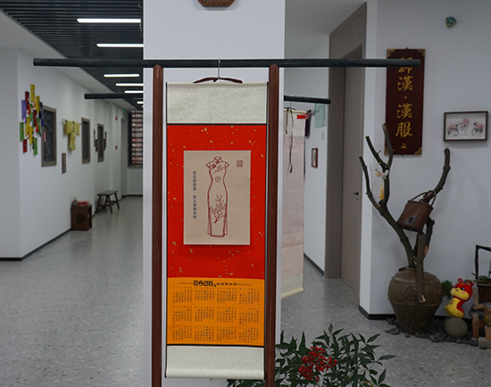 除了五件金石旗袍原作,来自上城区社区学院的文化特派员张西琴还将其延伸为多元文创产品:挂历、挂饰、摆台文创三件套上线,把采荷的文化韵味带回家!2026年挂历将旗袍雅韵融入日常时光,旗袍雅韵挂饰让文化随身相伴,金石旗袍秀摆台成为家居装饰新选,让“五和”文化渗透生活场景。这些成果不仅是文化特派员“以文赋能、以美润心”的实践成果,更彰显了采荷街道多元协同的文化建设模式——依托产业社区平台,链接文化资源、民间达人与居民需求,让文化从单向传播变为双向互动,从艺术殿堂走进生活市井。