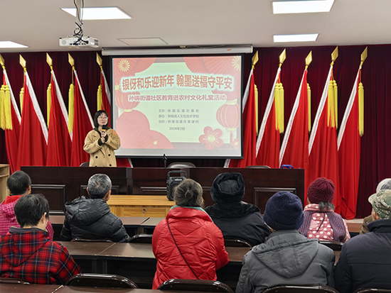 近日,孙端街道许家埭村文化礼堂内墨香四溢,暖意融融。上午9时许,文化礼堂内座无虚席,会场中央大屏幕上的“银伢和乐迎新年 翰墨送福守平安”活动主题格外醒目,来自孙端成人文化技术学校(孙端街道老年学校)的郑钰老师热情地欢迎着各位村民朋友的到来。