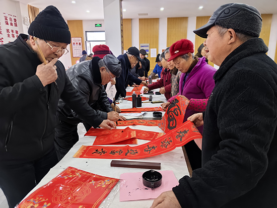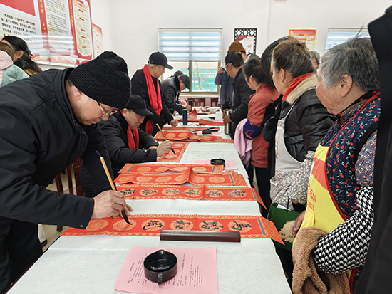 同时,来自孙端街道老年学校书法班的师生们在会场后排一字排开,泼墨挥毫。一个个饱满的“福”字、一副副寓意吉祥的春联,将新春的美好期许融入笔墨之中。宣讲活动结束后,村民们围拢过来,挑选着心仪的“福”字和对联,现场欢声笑语不断,会场内满是浓浓的年味。