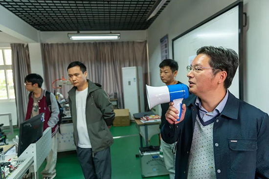家长会主环节结束后,机械电气系特别邀请新生家长前往实训楼参观。机械电气系主任陈伟江带着满满的诚意,带领家长们走进工业机器人实训室、数控实训室,整齐排列的数控机床、工业机器人、五轴加工中心等先进设备让家长们驻足细看。家长们不时提问交流,亲眼见证学校雄厚的实践教学实力后,纷纷表示"把孩子交给这样的学校很放心"。