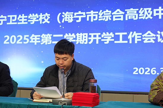 3月3日上午,海宁卫生学校(海宁市综合高级中学)在学术报告厅召开新学期开学工作会议,校领导班子及全体教职工参加。会议对上学期工作进行总结表彰,并对本学期重点任务作出部署。