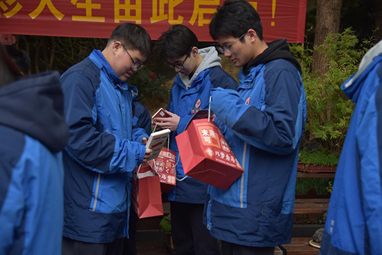 在校门口展板处,一批批高辅班学生陆续走来,原来这里正在进行新学期“祝福盲盒”大放送。23财旅高辅、23烹饪高辅、23化工高辅等班级的同学们在班主任带领下,有序来到盲盒礼包前,领取一个个精心包装的盲盒礼袋并合影留念。高一、高二年级的盲盒则由班主任提前领取在班级进行惊喜放送。“我抽到了一个写有‘前程似锦’的徽章!”“我的是‘逢考必过’系列幸运贴纸!”现场不时传来同学们的惊喜欢呼。据悉,每个盲盒内都装有不同的祝福语贴纸或小纪念品,寓意新学期每个人都能收获属于自己的精彩。“盲盒不仅是惊喜,更承载着学校对同学们的殷切期望,也希望高辅班学生在高三冲刺阶段马不停蹄、奋力拼搏、马到成功。”学生成长中心相关负责人表示。