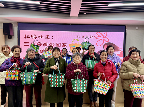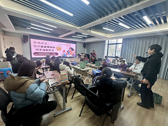 春风送暖,芳华绽放。在“三八”国际劳动妇女节即将到来之际,新碶街道社教中心杜鹃分中心开展“三八袋爱带回家 巧手编织芳华”主题手工活动,邀请辖区女性居民、微网格长、物业女性工作人员等20位代表欢聚一堂,在非遗绳编技艺中感受传统之美、共度温馨节日。