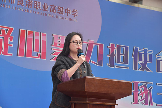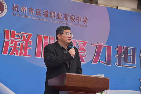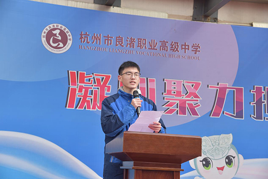 徐晟副校长在开学典礼上,以马年本命年为引致辞,先向全体教职员工和同学致以敬意、感谢与新学期祝愿,随后通过几组数字回顾2025年学校发展的丰硕成绩:学校斩获省、区级荣誉15项;高职本科上线28人,7位学生进入全省前100名;市师生职业能力大赛奖牌40枚等,彰显良匠之光。在此基础上,徐晟副校长对师生提出三点希望:一是传承良渚匠心,深耕技能,做“精益求精”的追梦人,以一技之长成就梦想;二是坚定理想信念,修身立德,做“德技并修”的明白人,遵守校规、涵养品德与职业精神,做新时代职教青年;三是提振精神面貌,知行合一,做“实干笃行”的赶路人,拒绝“躺平”,远离“佛系”,制定清晰目标并拆解为日常行动,迎接新学期的各项挑战,号召全校以“良渚文化”滋养心灵、以“工匠精神”雕琢未来,为建设高水平现代化职业学校共同努力。