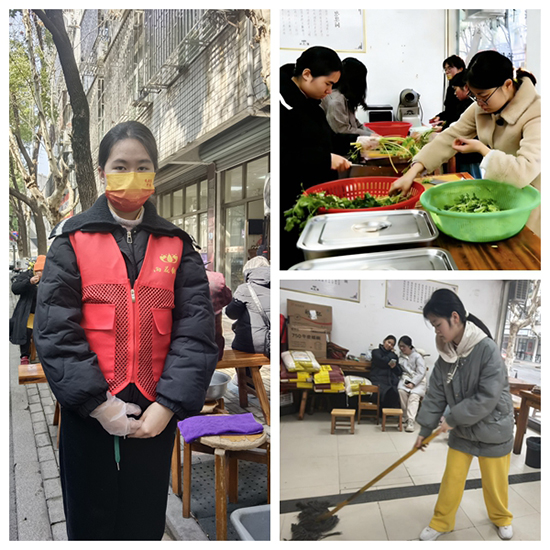 敬老爱老是志愿活动中最温暖的底色。这个寒假,同学们走进平湖绿康老年护理院、金色阳光老年公寓等养老机构,与老人闲话家常、学讲本地话,用陪伴驱散孤单。也有同学带着剪纸、做灯笼的手艺与老人携手创作,在指尖互动中感受传统年味。在桐乡雨花斋,大家早早到岗,迎接老人就餐、细心打扫房间、认真备菜摆盘,用贴心举动让老人们感受家一般的温暖。