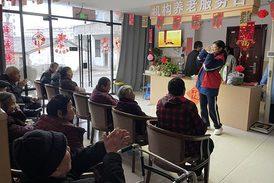 为丰富老人们的精神文化生活,志愿者们还精心准备了文艺节目。歌声、笑声交织在一起,志愿者们用俏皮的舞蹈、嘹亮的歌声、轻快的旋律,为老人们献上了一场简单而温馨的文艺表演,赢得了老人们阵阵热烈掌声。看着老人们脸上洋溢的幸福笑容,志愿者们也深深体会到了志愿服务的意义与价值。