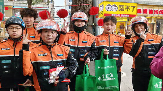 暖心关怀不止于此。活动现场还设置了“暖新补给站”,工作人员为骑手们送上崭新的冬衣,叮嘱大家注意保暖、平安出行。同时,开放大学德清学院和武康成校小哥学院的老师现场开展学历提升政策宣传,为有学习需求的新就业群体提供专业咨询,详细讲解报考流程、专业设置等关键信息,助力他们实现职业成长与自我提升。