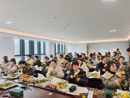 现场欢声笑语不断,学员们相互交流、互帮互助,在花香中增进情谊。培训结束后,大家手捧亲手制作的作品合影留念,脸上洋溢着满满的成就感与幸福感。
