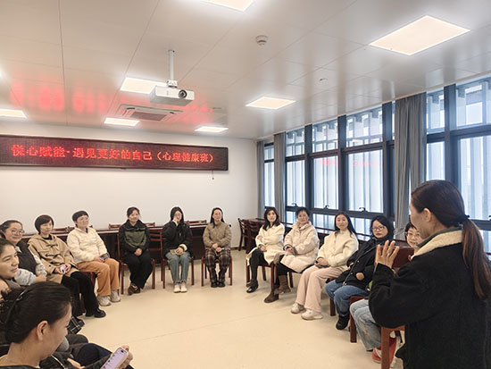 活动聚焦职场与生活双重压力下的女性心理健康需求,围绕情绪管理、压力调适、自我关怀、人际沟通等内容展开。授课老师结合典型案例与互动体验,用通俗易懂的语言讲解心理调适方法,引导大家正确认识情绪、科学释放压力、提升内在力量。现场氛围温馨融洽,参训女性认真聆听、积极互动,在交流分享中舒缓身心、收获成长。