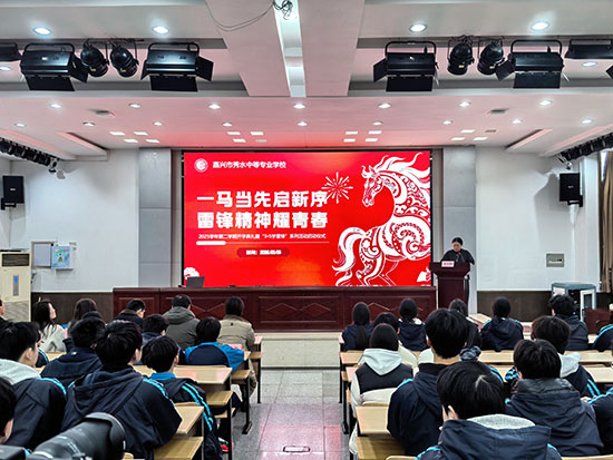 春风策马至,少年启新程。3月6日,嘉兴市秀水中等专业学校举行“一马当先启新序 雷锋精神耀青春”2025学年第二学期开学典礼暨“3·5学雷锋”系列活动启动仪式。典礼采取主分会场的形式,全校学生通过直播同步参与,共同开启新学期的奋进篇章。德育处主任徐斌彧主持典礼。