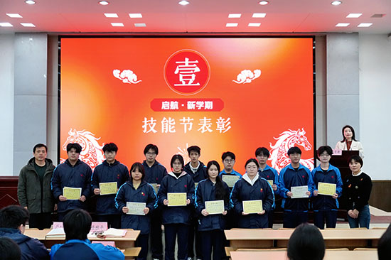 随后,副校长柴海燕、丁婷婷分别宣读嘉兴市第二十届中职学校技能节和学校“六美学子”表彰名单。校领导为获奖学生颁发荣誉证书,激励全体学子在新学期以先进为镜、以奋斗为荣,在技能成才的道路上奋勇争先、再创佳绩。