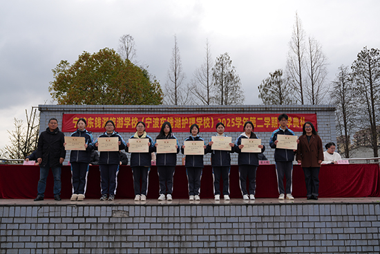 现场还举行了隆重的表彰仪式。林学伟副校长宣读了2025学年第一学期“阳光班级”“进步班级”“阳光学子”“校园十星”等获奖名单,董立毅副校长宣读了“优秀团支部”“优秀团员”“优秀团干部”名单,校领导现场为获奖集体和个人颁发奖状,掌声如潮,榜样力量催人奋进。