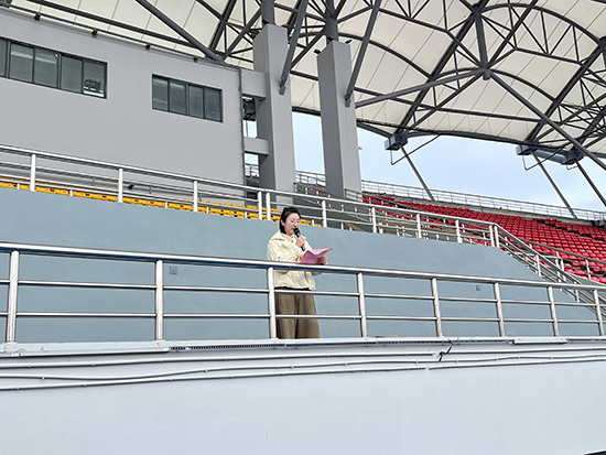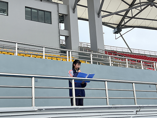 共青团员、学生会礼仪队成员钱诗璟同学以“奉献第一课”分享她参与嘉善县“两会”志愿服务的成长故事。从紧张培训到从容服务,从忐忑登场到圆满收官,她倡议:“让我们在奉献中磨砺自我,让青春在志愿服务中闪光!”