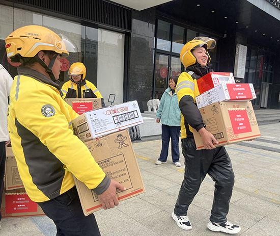 仪式结束后,爱心脚步却没有停歇。基金会与社区工作人员带着物资,奔赴祥成江南大厦快递站点,走近另一群可敬可爱的人——外卖小哥。他们穿梭于城市的大街小巷,风雨无阻,只为将热腾腾的饭菜准时送达。他们是城市运转的“毛细血管”,是新就业群体的缩影。“平时都是我们给别人送东西,今天收到别人送来的温暖,心里特别开心。”一位外卖小哥接过牛奶和泡面,开心的笑着回答。