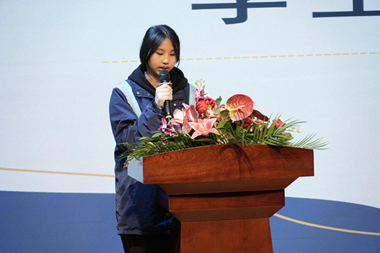 旅服232班的邝益晴同学代表全体学生发言,她由衷感谢老师的悉心栽培,感谢学校和企业给予锻炼的机会。她表示会以谦逊之心认真学习,以务实的精神踏实做事,牢记双重身份,在岗位上发光发热!