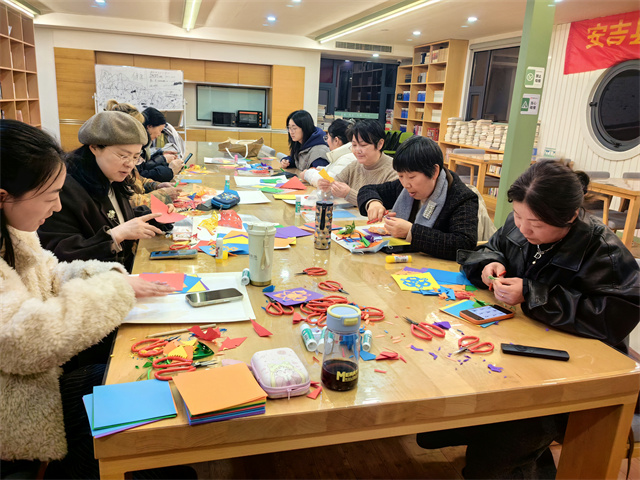 开班当晚的课堂氛围十分浓厚。非遗剪纸课上,学员们在老师的细致指导下,熟练掌握纸张折叠、纹样裁剪等技巧,一步步完成了一幅幅寓意吉祥的百变团花创作——这种呈圆形花样、四面均齐的剪纸形式,承载着人们对美好生活的期许,也让学员们在动手实践中感受非遗文化的魅力。手工编织课堂上,学员们专注投入,在老师的耐心讲解下,一针一线勾勒,亲手完成了一个个灵动可爱的绳编小马作品,马的意象既契合马年主题,也承载着“马到成功”的美好祝福,看着自己的劳动成果,学员们纷纷表示收获满满、倍感充实。