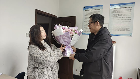 3月6日上午,学校领导班子成员开展“实干争先 鲜花送暖”慰问活动。校长张国强亲自来到女教职工的工作岗位,为每一位辛勤耕耘的“女神”送上一份专属节日礼物和一束芬芳的鲜花。向全体女教职工致以节日的问候和美好的祝福,对她们长期以来在成人教育及社区培训工作中付出的智慧与汗水表示衷心的感谢。这一暖心举措让女教职工们倍感温馨,现场洋溢着喜悦与感动,大家纷纷表示将把这份关爱转化为工作的动力,继续为高质量建设国际化绿色山水美好城市贡献巾帼力量。