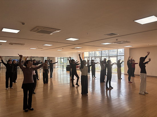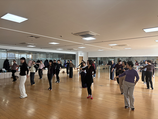 课堂上,学员们全神贯注、认真聆听,紧跟老师的节奏反复练习。抬手、转身、屈膝、舒展,每一个动作都认真模仿,每一次练习都全力以赴。“起势要如春风拂柳,转身须似流水行云”,老师的悉心指导与学员们的积极投入,让舞蹈教室充满了生机与活力。