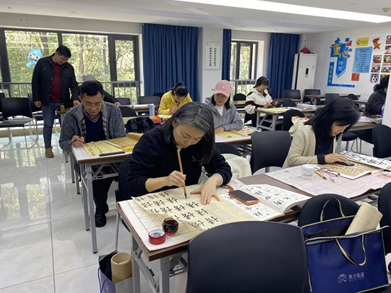 书法班墨香启新、翰墨飘香,课程以修身养性、以书会友为宗旨,专业老师从执笔姿势、基本笔画入手,循序渐进教授书写技法。学员们凝神运笔、静心研习,在一撇一捺中感受中华传统文化的深厚魅力。