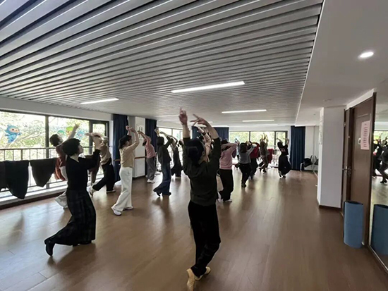 中国舞班轻盈灵动、活力绽放,学员们翩翩起舞、身姿曼妙,在优美舞步中舒展身心、展现风采,在艺术熏陶中收获快乐,增进邻里情谊。