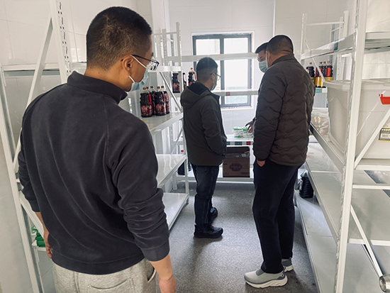 在食品储存间,督查组认真核查原材料来源,严查“三无”产品及过期变质食品,检查原材料是否离地、离墙规范存放,查看食堂及库房挡鼠板、挡鼠网、下水道防护等设施安装情况,并对食品留样进行细致检查,重点关注留样分量、留样时长、密闭保存、冷冻储存等是否规范。对现场发现的问题,督查组当场反馈,要求随行人员立即整改落实。