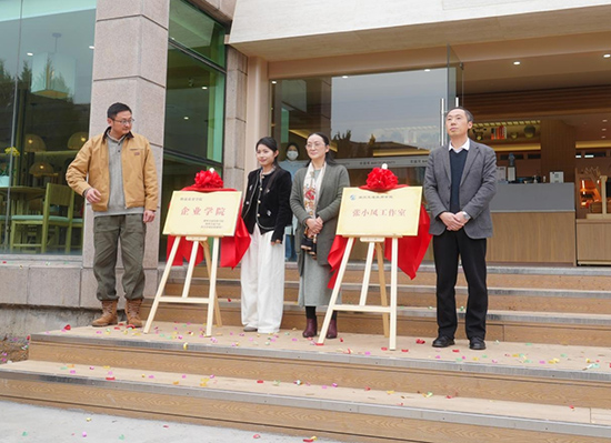 在全场热烈的掌声中,湖州交通技师学院校长张默晗与国家级非遗传承人张小凤共同为“张小凤工作室”揭牌,副校长平平与企业老师吴瑕共同为“企业学院” 揭牌。这不仅是校企双方深化合作的重要基石,更是推动非遗传承与职业教育协同发展的生动实践,标志着以技能传承、人才培育为核心的校企专项合作平台正式落地。“张小凤工作室”落户学院,将成为展示精湛湖笔制作技艺的重要窗口,将为师生们提供一个近距离观摩学习、亲手体验这集传统古法与国礼品质于一身的非遗技艺的宝贵平台。
