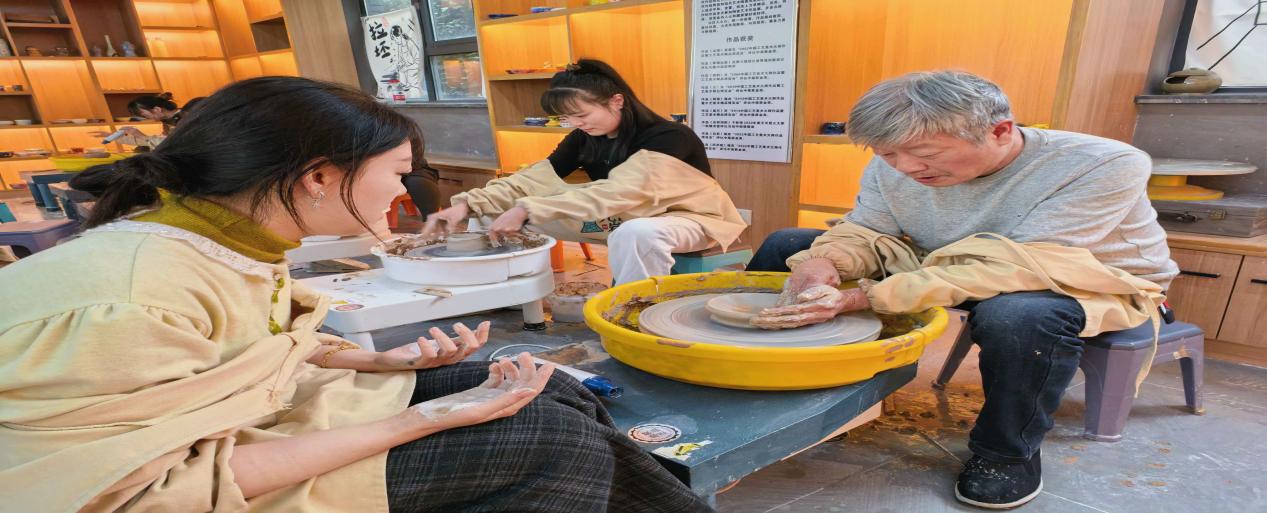 本次培训可谓创意无限,培训对象为辖区内的陶艺制作爱好者,学员习陶艺,非遗续根脉。96名爱好者借九岩村陶艺坊通过三场三个下午的制作培训,初步学会了拉坯、上色、上釉、上窑等步骤。学员们在专业师傅的指导下从揉泥塑形,感受陶土在手中成型的奇妙,到学习施釉,小心翼翼地为坯体穿上“青翠外衣”。每个步骤都充满了挑战与乐趣。大家亲身实践,体会着青瓷“青翠润绿, 剔透晶莹”的匠心之美。