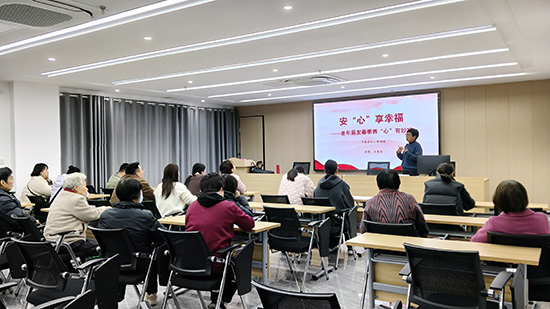 3月20日,正值二十四节气春分,武康成校与千秋社区携手,在千秋党群服务中心二楼会议室举办“安心”享幸福老年心理健康专题讲座,吸引近30位社区老年居民参与。本次讲座特邀心理咨询师王美丽主讲,以专业科普与贴心引导,为老年朋友送上春日心灵关怀。