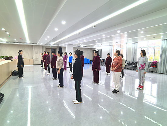 太极班现场则舒展从容、动静相宜。伴随着舒缓的音乐,老师带领学员们凝神调息、舒展身姿,一招一式刚柔并济、行云流水。大家认真揣摩动作要领,在缓慢优雅的练习中强身健体、舒缓身心,既锻炼了体魄,又增进了邻里情谊,尽显社区长者健康向上的精神风貌。