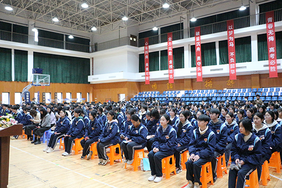 3月23日下午,杭州市临平商贸职业高级中学2026届高三高考誓师大会暨理论高考冲刺动员会在学校体育馆隆重举行。校领导班子成员、各专业部负责人及高三年级全体师生齐聚一堂,以昂扬姿态吹响高考冲刺的号角,为即将奔赴考场的学子们壮行助威。