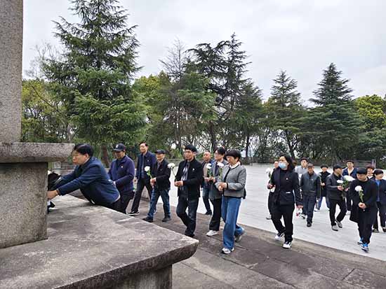 会后,社区组织党员前往柯桥区烈士陵园,开展清明祭扫活动。全体党员在烈士纪念碑前整齐肃立,向革命先烈敬献花篮,深切缅怀革命先烈的丰功伟绩。在社区党委书记领誓下,全体党员面向党旗庄严宣誓,重温入党誓词,铿锵誓言回荡陵园,彰显党员坚守初心、勇担使命的坚定信念。仪式后,党员们驻足瞻仰烈士墓碑,追忆革命先辈的奋斗历程,接受深刻的红色教育与精神洗礼。